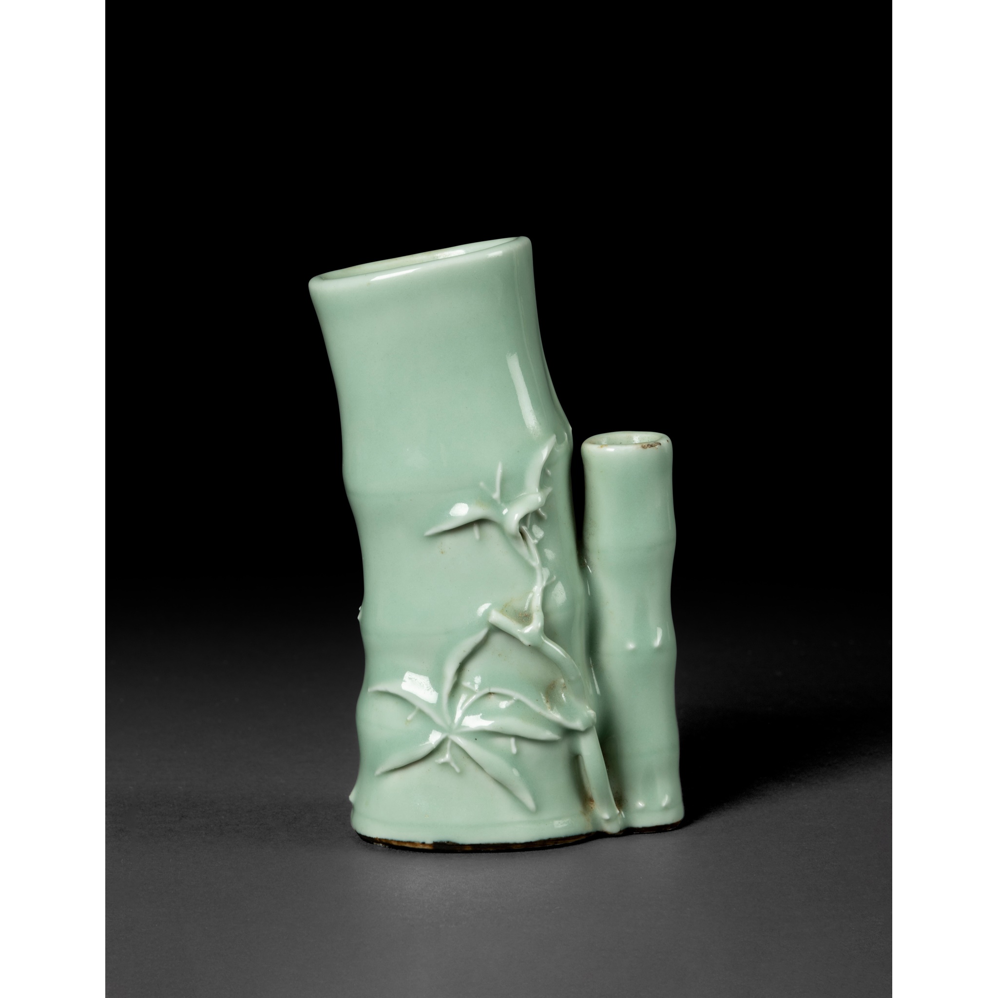 Note: A pair of highly comparable celadon-glazed bamboo-form brushpots, also dated to the Qianlong period, and later added with Louis XV ormolu mounts circa 1750, was sold at Christie's London, 8 July 2021, lot 6. Another similar example was sold at Christie's New York, 28 Sep 2021, lot 17.