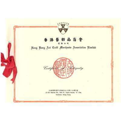 Provenance: Private Glasgow collection, previously in a private English collection, Brighton. With a Certificate of Antiquity issued by Hong Kong Art Craft Merchants Association Limited (香港藝術品商會有限公司) on 28th Feb 1986, stated the piece dated to the Ming dynasty.