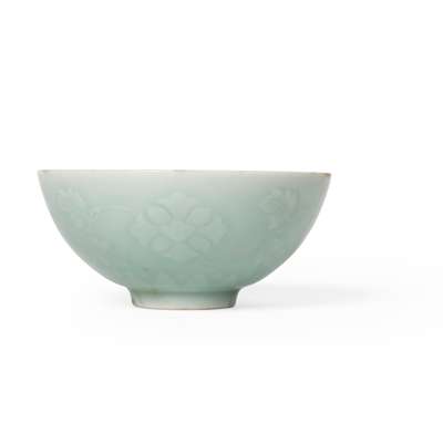 MOULDED CELADON-GLAZED 'FLORAL' BOWL