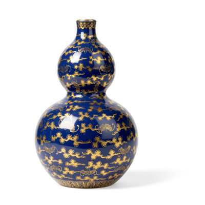 清光緒款及年代 灑藍地描金祥雲百蝠紋葫蘆瓶