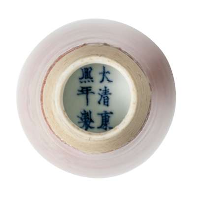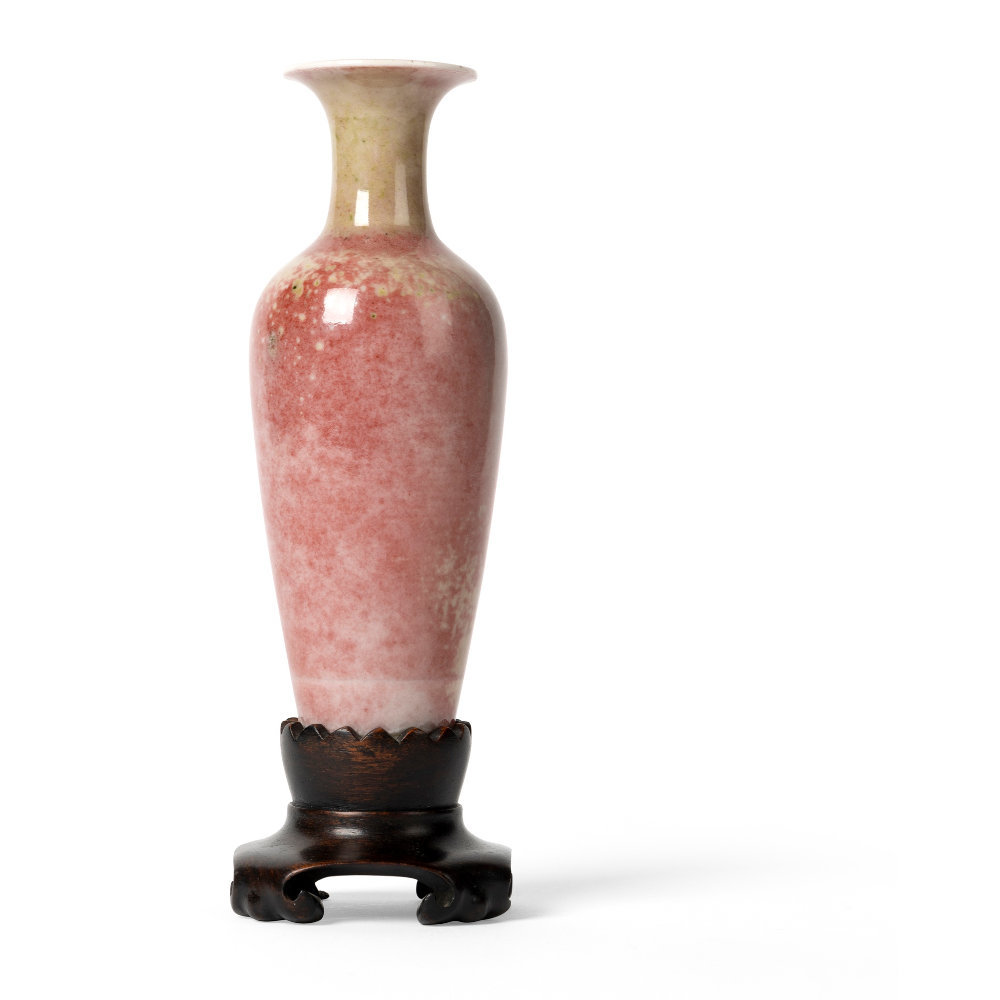 康熙款 豇豆紅釉觀音瓶 帶木座