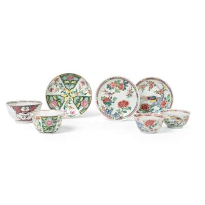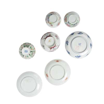 清 各色外銷粉彩花鳥紋杯及盞(共七件)