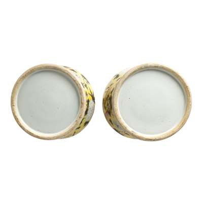 清 黃地墨彩穿花龍紋蓋瓶(共兩件)