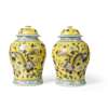 PAIR OF GRISAILLE-DECORATED YELLOW-GROUND 'DRAGON' LIDDED VASES