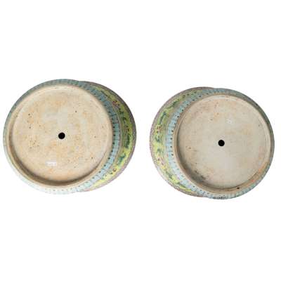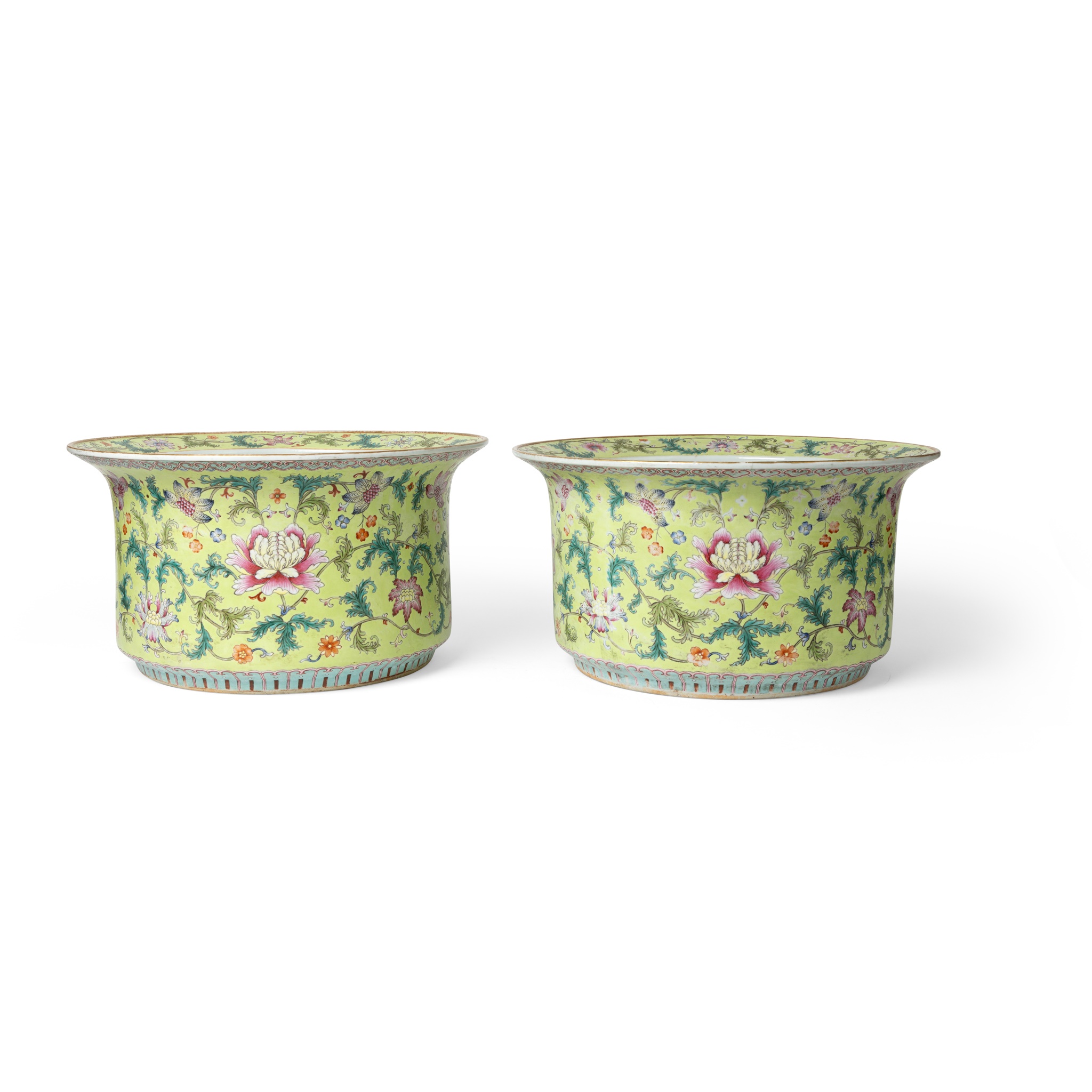 清 檸檬綠地花卉紋大花盆(共兩件)