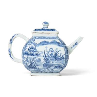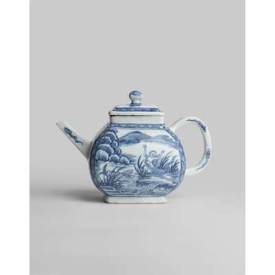 According to David S. Howard's research, "a small number of these teapots are known and the design was clearly specially commissioned - possibly even including the shape of the teapot to accommodate a rectangular engraving." A very similar example is illustrated in his publication The Choice of the Private Trader: Private Market in Chinese Export Porcelain Illustrated from the Hodroff Collection, published by Zwemmer, London, 1994, no. 154, p. 145. Another example in the collection of Groninger Museum, the Netherlands, is illustrated in La Porcelaine des Compagnies des Indes à Décor Occidental, by François et Nicole Hervouët, Flammarison, Paris, 1986, p. 309.