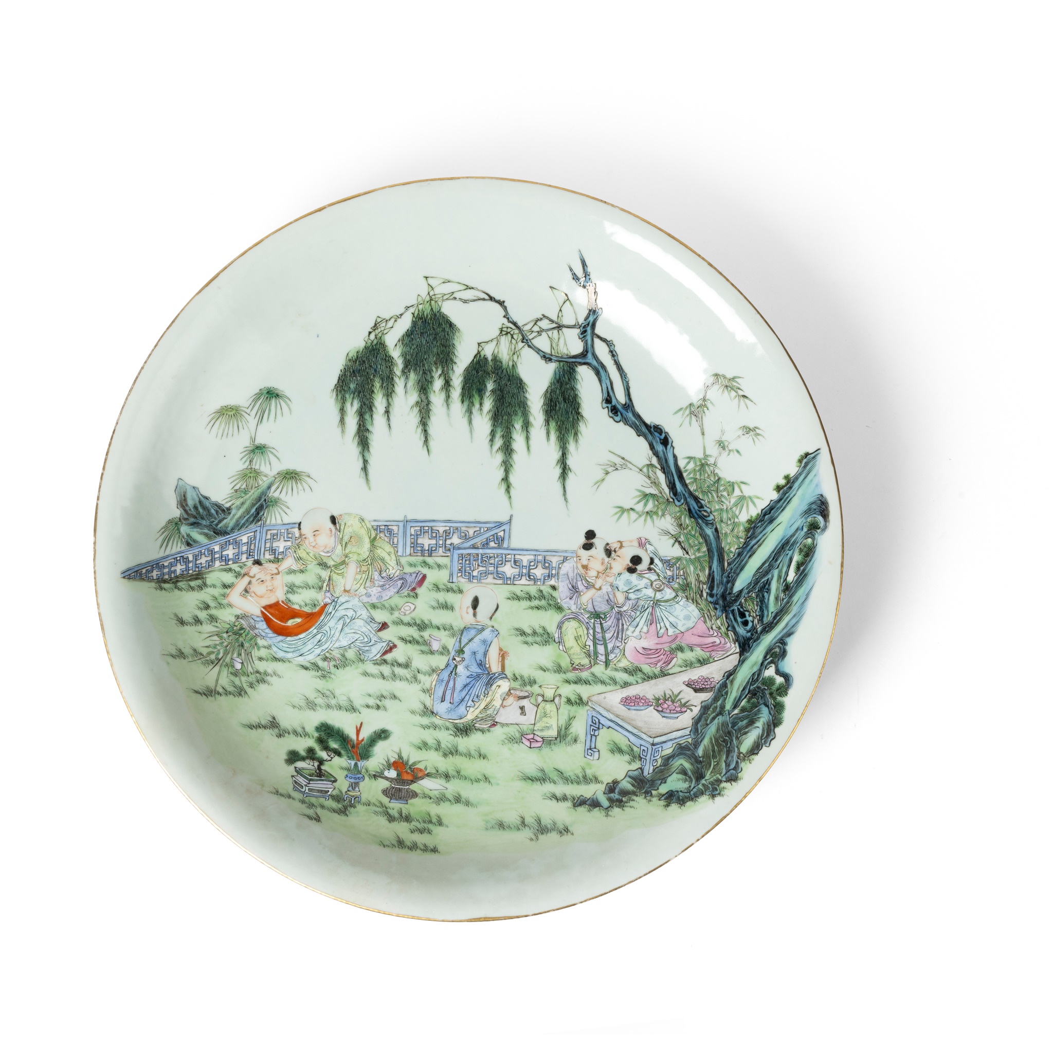 LARGE FAMILLE ROSE 'BOYS AT PLAY' CHARGER