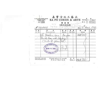 Provenance: Private English collection, Brighton; acquired from Ka Po Curios & Arts, Hong Kong (嘉寶古玩工藝品)on 10th March, 1995, with an original receipt stated the piece about 70 to 80 years old