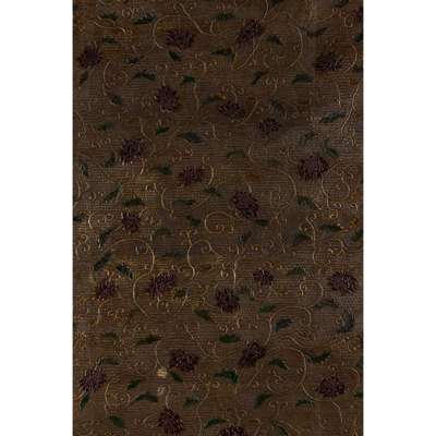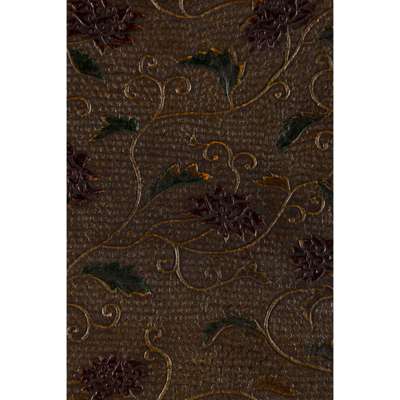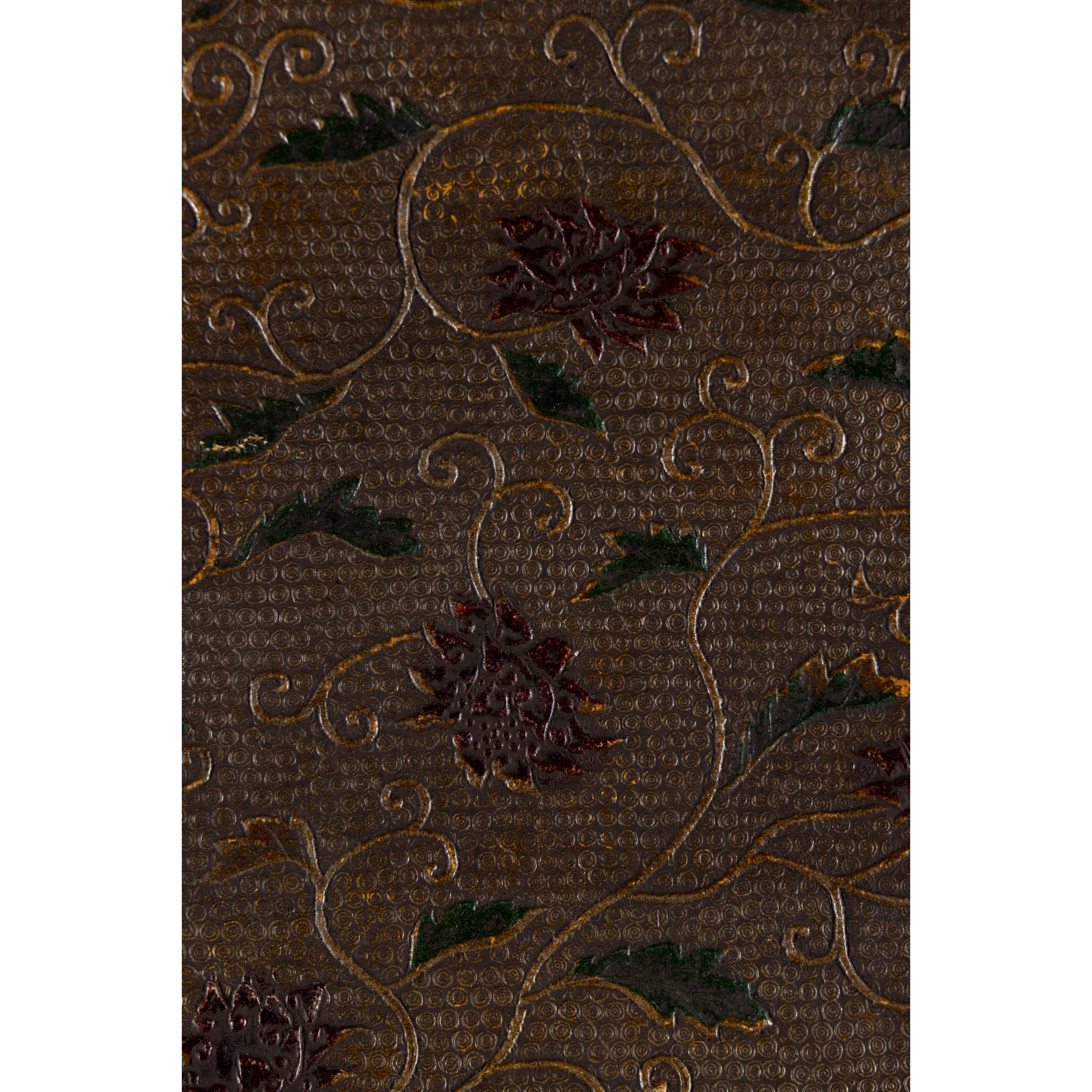 LONG SCROLL GILT EMBOSSED LEATHER PAPER, KINKARAKAWAKAMI, WITH RED FLOWERS