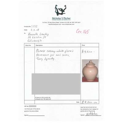 Note: Comparable white-glazed jars with covers, Tang dynasty, with nuances of size and form, sold at Bonham's New York, 21 July 2020, lot 129; Christie's New York, 24 September 2021, lot 822, and 17 March 2017, lot 1135.