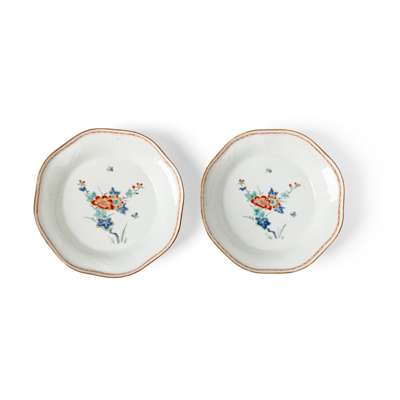 江戶 柿右衛門彩繪花蝴圖花口碟(一對)
