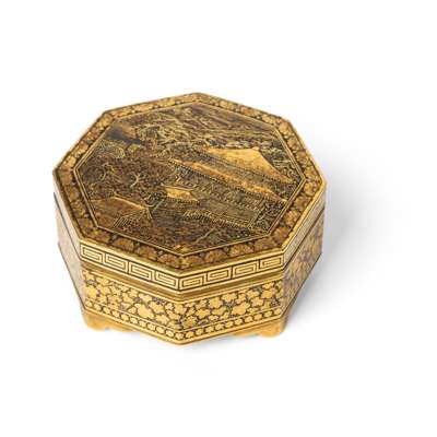 FINE JAPANESE KOMAI DAMASCENE OCTAGONAL BOX AND COVER