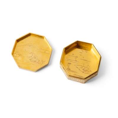 明治 日本国京都住駒井製款 金工八角型蓋盒