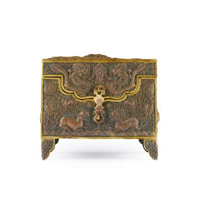 PARCEL-GILT COPPER-ALLOY REPOUSSÉ 'CHATURBHUJA LOKESHVARA' CASKET