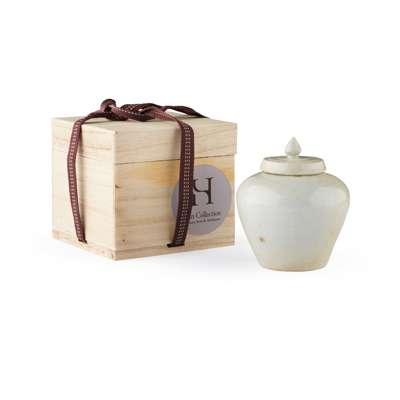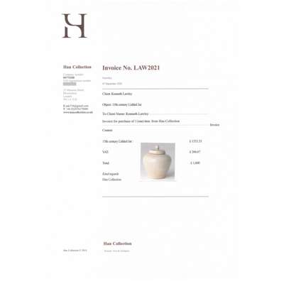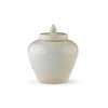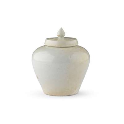 Note: Four comparable larger white porcelain jars with three covers, Joseon Dynasty, are in the collection of the National Museum of Korea, accession no. Sinsu 2106. An even larger example, 31.1cm high, note the ripple details on top of the cover, is in the Metropolitan Museum of Art, accession no. 2021.125a, b. According to the catalogue of the museum, the elegance of this jar and its lid exemplifies the aesthetic of undecorated white porcelain that was popular in the 15th–16th century Joseon. In its balanced proportions and subtle design features on the lid with a bud-shaped knob, this porcelain reflects the refined sensibilities associated with the new ruling ideology of Neo-Confucianism of the Joseon dynasty (1392–1910).
