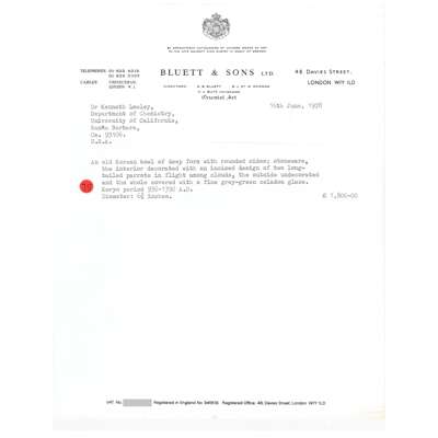 Provenance: Bluett & Sons Ltd., 16 June 1978, with an original receipt and an associated label on base.