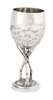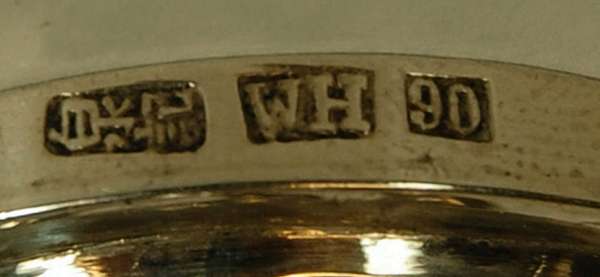 marked WH, 90, character mark, the bowl of tapered form, rasied on three twisted stems modelled as bamboo, on a domed embossed base