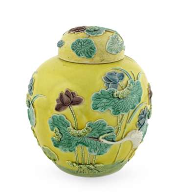 the sides moulded in high relief with cranes amongst waterlilies and bullrushes