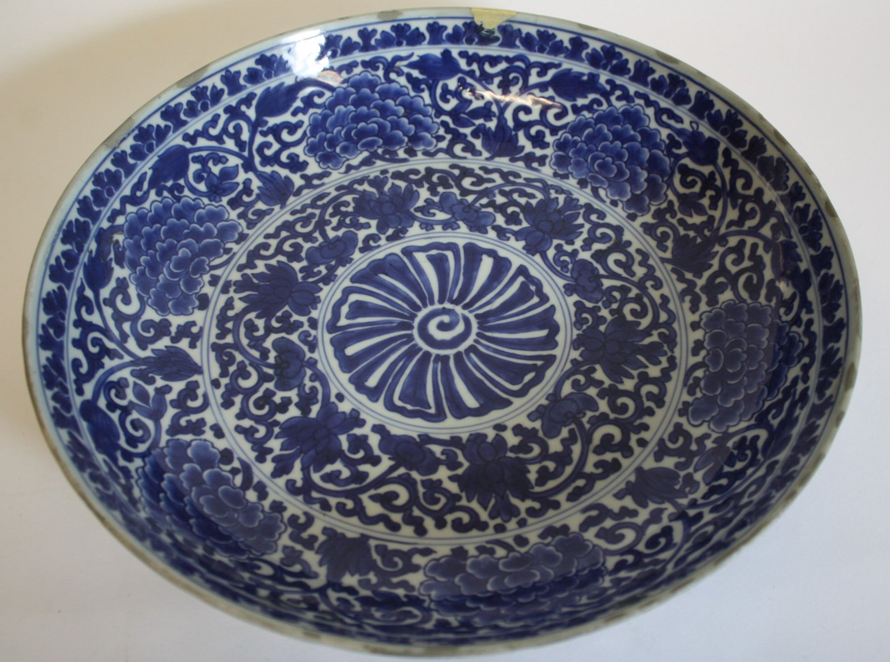 painted in underglaze blue with a central roundel within bands of scrolling foliage