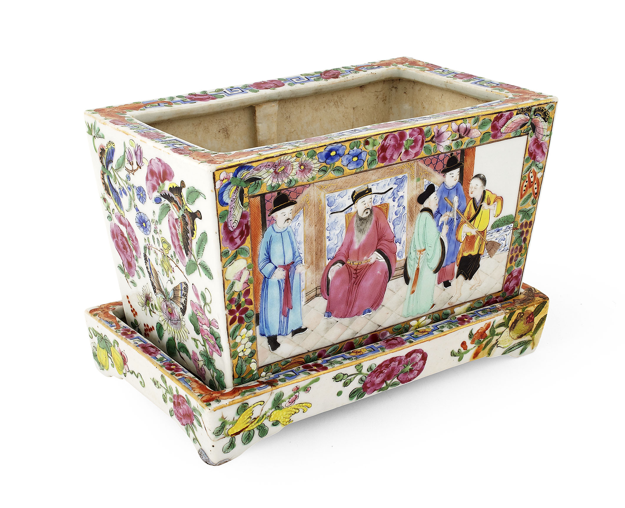 painted in the typical palette with figural panels