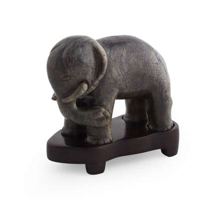 the realistically carved animal raised on wood base