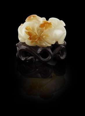 modelled as two sleeping cats amongst blossom, with a hardwood stand