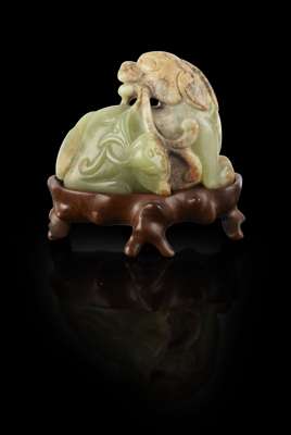 SMALL CHINESE YELLOW JADE FIGURE OF A RECUMBENT MYTHICAL BEAST