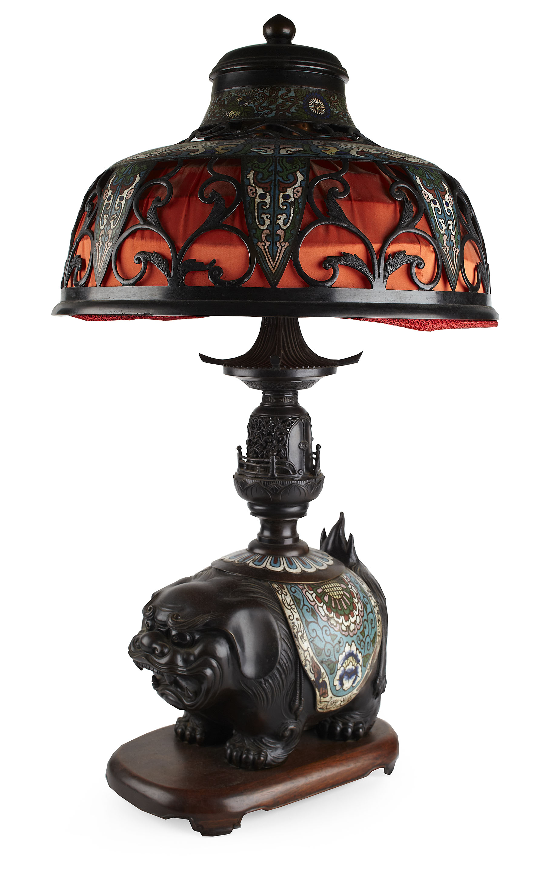 form as a mythical beast, from its back issues a stylised pagoda column surmounted by an openwork shape