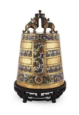 CHINESE BRONZE AND CLOISONNE BELL
