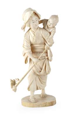 JAPANESE CARVED IVORY FIGURE, BY DOSAI