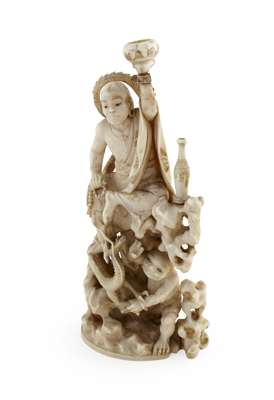 modelled as a gamma sennin and a oni, with a dragon in a rockwork base, red seal mark