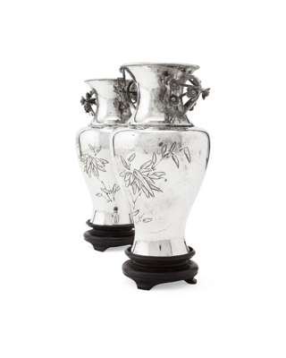 FINE PAIR OF CHINESE SILVER FILIGREE FANS, WITH EUROPEAN SILVERED AND GILT BRONZE STANDS