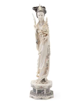 CHINESE CARVED SOAPSTONE FIGURE OF GUANYIN AND INFANT