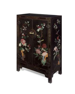 CHINESE BLACK LACQUER AND HARDSTONE CABINET