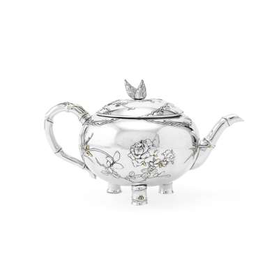 CHINESE THREE PIECE PLATED PEWTER TEA SET