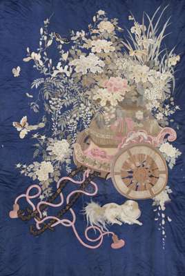 CHINESE SILK AND METALLIC EMBROIDERED HANGING
