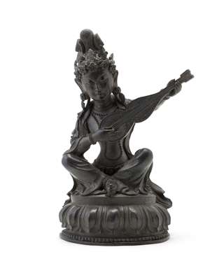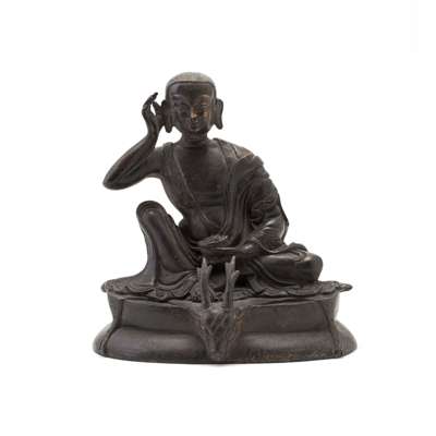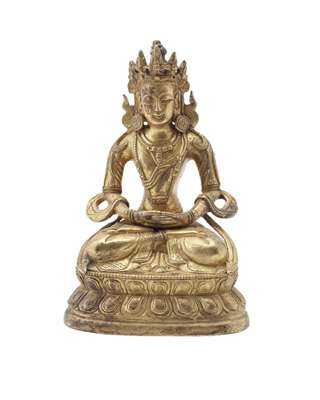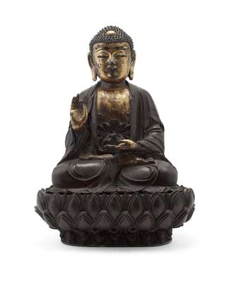 CHINESE GILT BRONZE AND 'JEWELLED' FIGURE OF BUDDHA SAKYAMUNI