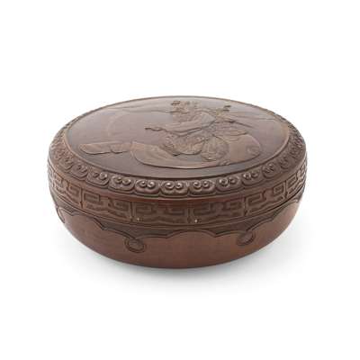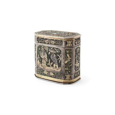 CHINESE SILVER HEXAGONAL BOX AND COVER