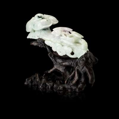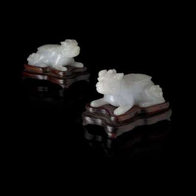 PAIR OF CHINESE LAVENDER JADE WINGED MYTHICAL BEASTS