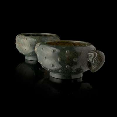 PAIR OF CHINESE ARCHAIC STYLE MOSS AGATE BOWLS