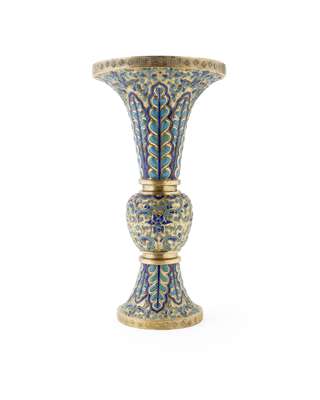 CHINESE ENAMEL AND GILT BRONZE GU FORM VASE