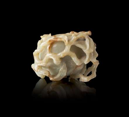 GOOD CHINESE CARVED CELADON AND RUSSET JADE VASE