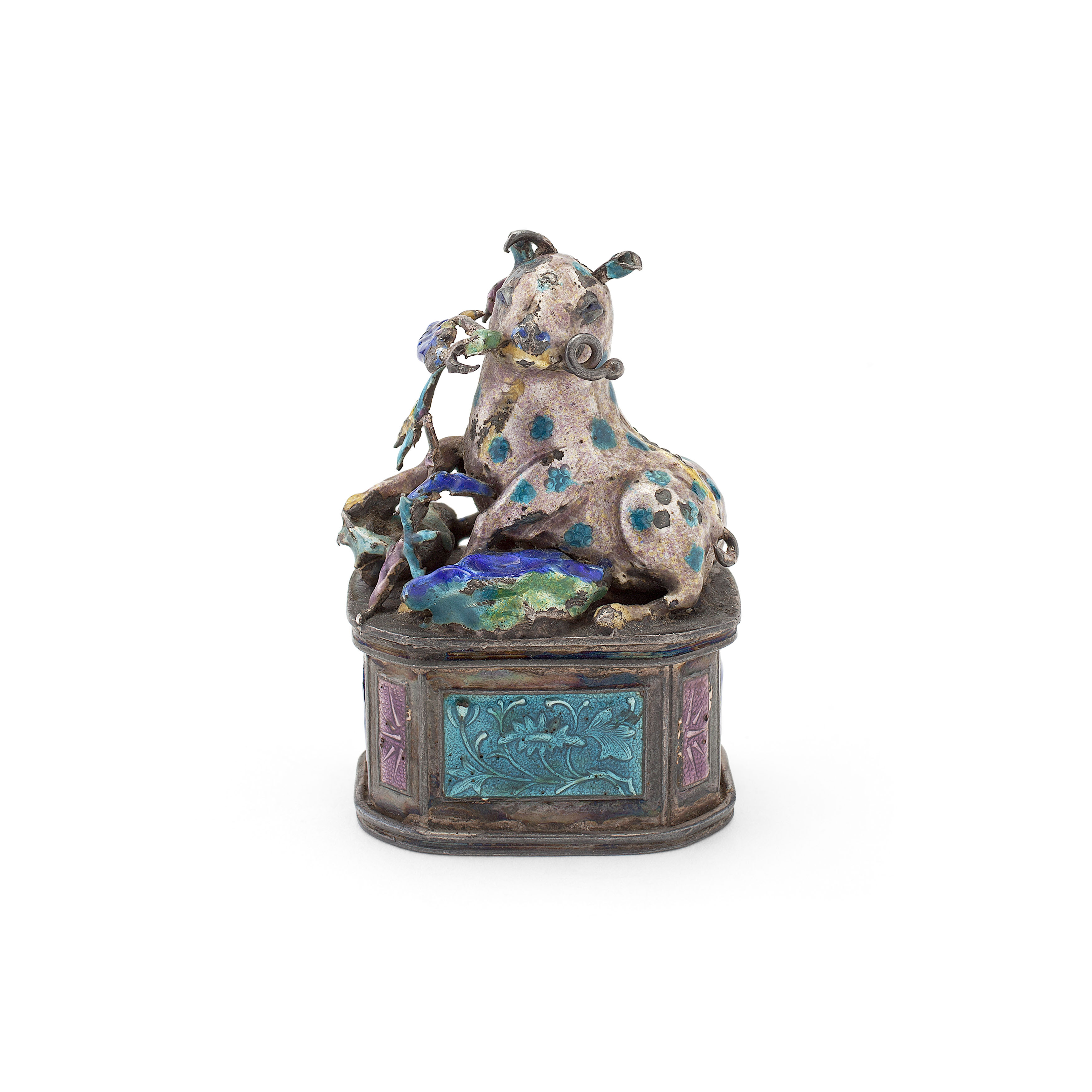 the canted rectangular sides surmounted by a qilin in coloured enamels
