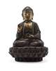 seated with his right hand raised, the other resting in his lap, his hands, chest and face gilt bronze, on lotus leaf base
