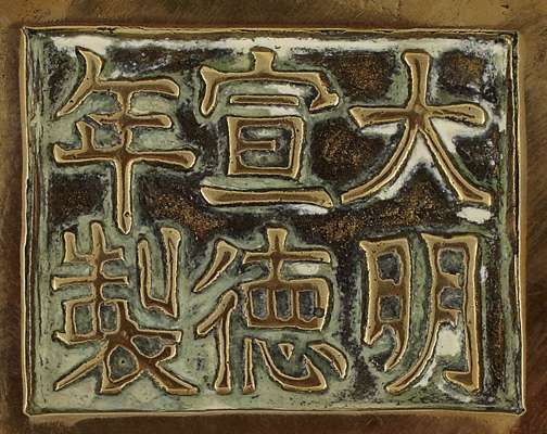 the flattened ovoid sides with twin loop handles, Ming six character mark