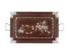 the rectangular tray with hammered metal mounts and twin simulated bamboo handles, inlaid with chrysanthemum and butterflies