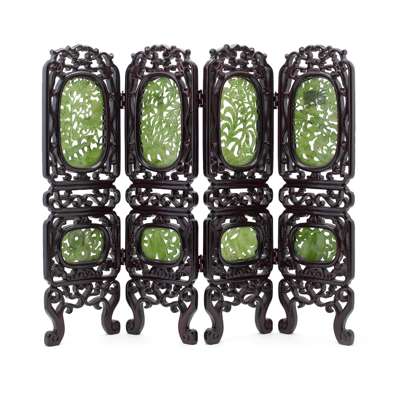 CHINESE JADE INSET AND HARDWOOD FOUR PANEL TABLE SCREEN