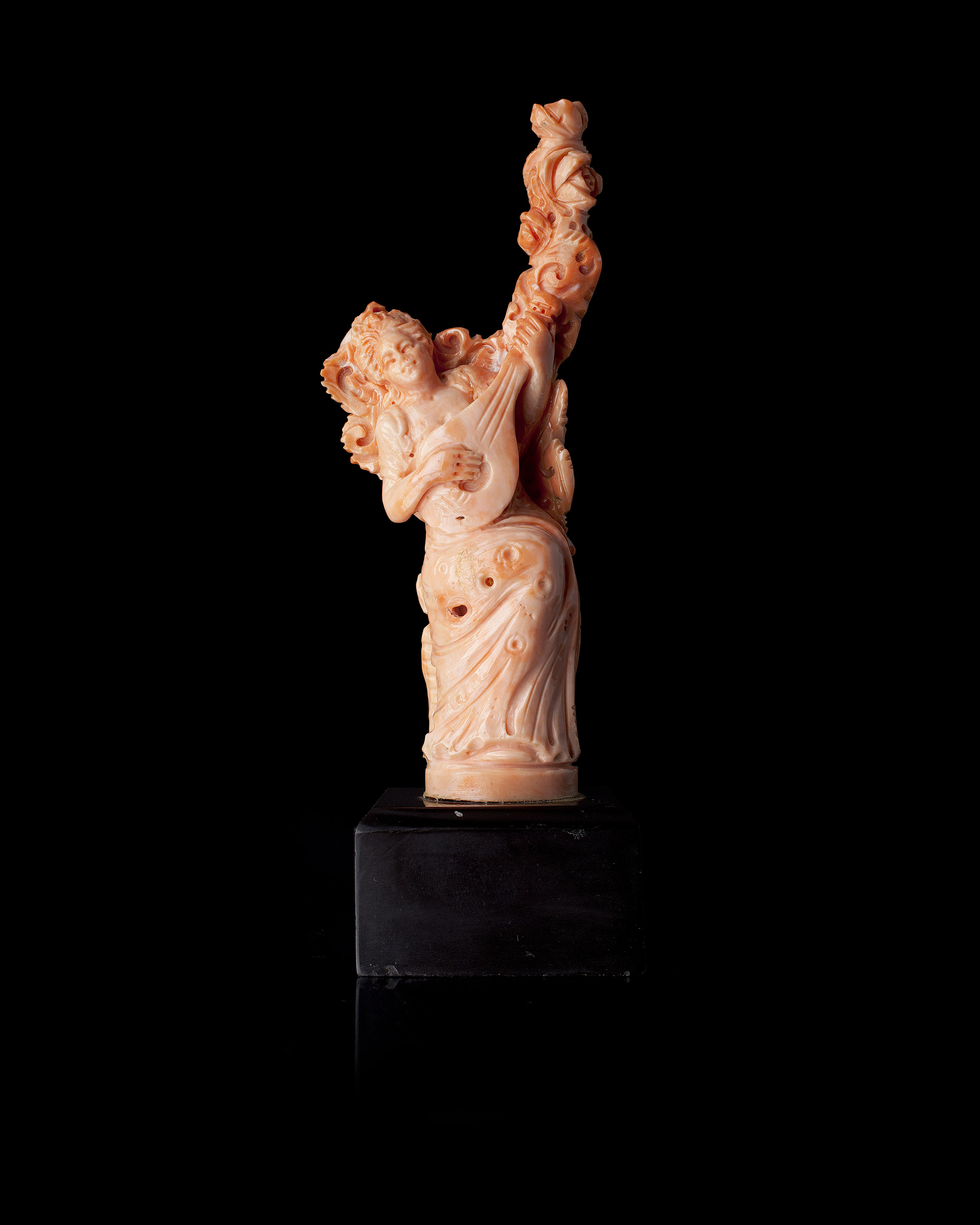CARVED ANGEL SKIN CORAL FIGURE OF A LADY