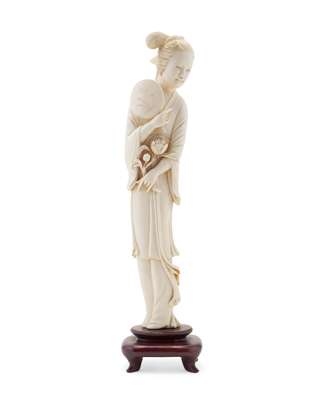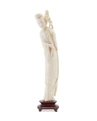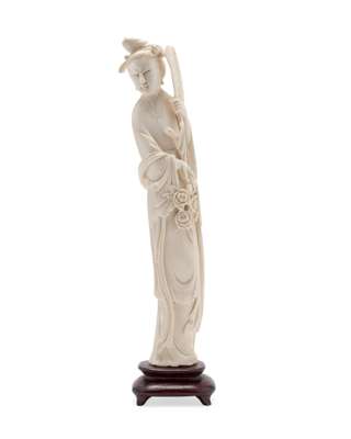 the standing figures holding either blossoming branches or fans, raised on wood stands (8)