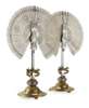 FINE PAIR OF CHINESE SILVER FILIGREE FANS, WITH EUROPEAN SILVERED AND GILT BRONZE STANDS